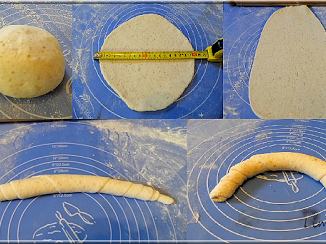 3. A zsemlékhez ismét gömbölyítjük (Ebben a bejegyzésben egy videó mutatja meg, hogyan), a kiflihez egyesével oválisra nyújtjuk őket, majd feltekerjük.