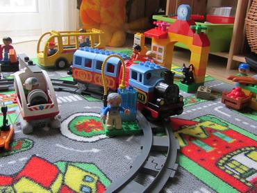 Jó dolog, hogy az építőelemek mellett számtalan figura, autó, egyéb kiegészítő kapható, így sokáig fenntartható az érdeklődés. Mára középsős ovis és állandóan beszél, mesél. Hol a kutyás rendős bácsi bőrébe bújik és lefüleli a bolti tolvajt, hol egy kislányt ültet be az iskolabuszba, hogy nehogy elkéssen az iskolából. De a legújabb kedvence egy elemes kisvonat, ami egyszer utasokat, máskor állatokat szállít és naponta számtalanszor meg kell tankolni, mert a hang, amit ilyenkor hallani, irtó vicces.