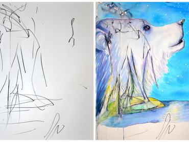 Amikor először elkezdtük, Eve fekete tollal rajzolt. A szókincse még elég csekély volt, így megpróbáltam kitalálni, hogy mire gondolhatott, vagy néhány kedvenc dolgát festettem a képre. (Mint például Elsa hercegnőt.) Azonban, ahogy idősödik, a szókincse is egyre bővebb, úgyhogy most ő dönti el, hogy milyen színeket használjunk, és, hogy mit kell kihoznom az ő rajzából. Ő választja meg, hogy mit kell még hozzáadni a képhez és, hogy mikor van készen.” - mondta el a Díványnak a művésznő, Ruth Oosterman.