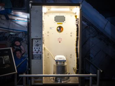 Ami sokakat foglalkoztat, hogy mit esznek az űrhajósok, és hogyan mennek vécére. Ezt sem hallgatták el szemérmesen, hanem a szemünk elé tárják az űrvécét, amiben egy szippantyú igyekszik a székletet gyorsabban kiszívni, mint ahogy az űrhajós fenekéhez ér.