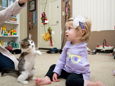 „Miután láttam a tévében az esetet, azonnal felhívtam a menhelyet, ahol a három hónapos cica, Doc, volt. Amikor a kislányom meglátta, észrevette, hogy hiányzik az egyik lába. Gyengéden megérintette és azt kérdezte: bibis? Azt szerettük volna, ha a gyerek látja, hogy nem ő az egyetlen aki így éli az életét, és erőt merítsen a macskából, illetve lássa, hogy az állat milyen egyszerűen birkózik meg a dologgal.” - fejezte be Tipton. Ha követni akarja a gyerek és a macska történetét, itt megteheti.