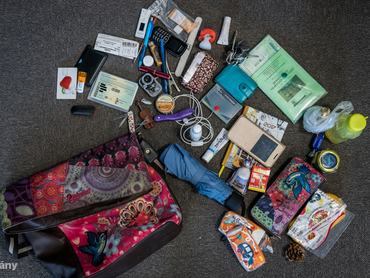 Ezzel a bűnös szórakozással szeretnénk most megajándékozni olvasóinkat: virtuálisan kutakodhatnak szerkesztőségünk tagjainak táskájában, és még csak morzsás/csokis sem lesz a kezük! Csak annyit kérünk: válaszolják meg kérdésünket, miszerint egy anya/apa, vagy egy gyermektelen férfi/nő táskáját látják a képen!