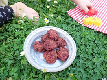 A gyerekek előtt jóformán csak darált húsos, nagy ritkán halas fasírtot készítettem, azután fedeztem fel, hogy maga a formátum mennyire sikeres, és mennyiféle zöldség, gabona, olajos mag megfér békésen egy lapított gombócban. Néhány darab akár komplett babafogásként is megállja a helyét.