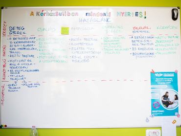 Épp ezért azt látjuk, messze nem a tanulási le- és kimaradás a legnagyobb probléma. Sőt, kimondhatom, hogy a tanulást inkább csak eszközként használjuk. Nem a lexikális tudás átadása az elsődleges célunk, hanem hogy visszaadjuk ezeknek a gyerekeknek az önbecsülését, az önértékelését, és hogy segítsük őket abban, hogy ismét céljaik legyenek. Úgy pontos, hogy komplex oktatási rehabilitációt nyújtunk, aminek része a tanulás, és az is, hogy segítsünk visszaszerezni a társas kompetenciákat, majd a visszatérést a régi közösségébe, a betegség előtti életébe.