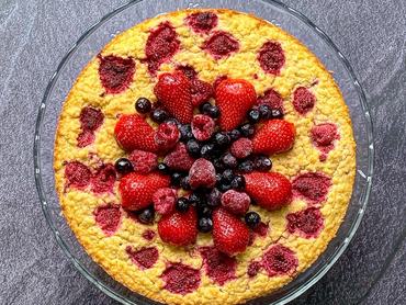 A kölest átmossuk és 1,5 deci vízben egy csipet sóval elkezdjük főzni. Ha a víz elforrt, 6-7 dl kókusztejjel felöntjük, hozzáadunk 12 dkg édesítőt, egy vaníliarúd kikapart magjait, belereszeljük egy citrom héját, belekeverünk 2 dkg kókuszreszeléket, és addig főzzük, amíg magába nem szív minden folyadékot, majd hagyjuk kihűlni. Az egész tojásokat 8 dkg édesítővel nagyon habosra verjük, hozzáadunk 1 dl kókuszolajat. A tojásos habot belekeverjük a kihűlt kölesbe, hozzáadunk kb. 20 dkg málnát, epret vagy bármilyen más gyümölcsöt. A masszát 26 cm-es tortaformába simítjuk, a tetejére jön még kb. 10 dkg gyümi. Légkeverésen, 160 fokra előmelegített sütőben kb. 1 óráig sütjük. Jól áll hozzá bármilyen lekvár, gyümölcsragu, szörp.
