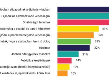 Több beszélgetés és több figyelem egymásra, ez volt az elmúlt időszak pozitív serpenyőjében. Nemcsak a gyerekek tanulására jutott több idő, mint eddig, hanem a velük való kikapcsolódásra is. Emellett a gyerekek számára a legfontosabb hozadék az volt a szülők véleménye szerint, hogy jobban eligazodnak a digitális világban, önállóságot tanultak, és fejlődött az alkalmazkodóképességük.