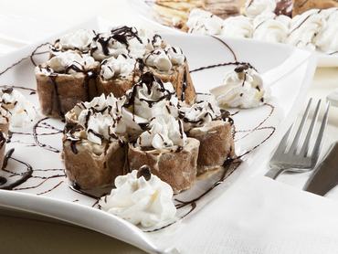 5. Kend meg a krémmel a palacsintákat, és mindegyik közepébe csavarj 1-2 babapiskótát is.