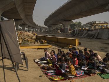 Az indiai Újdelhiben a hátrányos helyzetű gyerekek szabadtéri iskolába jártak a Covid alatt. Szőnyegen ülve tanultak egy rögtönzött tanteremben, amelyet egy építkezési terület kellős közepén állítottak fel 2020. december 9-én. Ezeknek a gyermekeknek a szülei nem engedhetik meg maguknak az online órákhoz szükséges laptopokat vagy táblagépeket, így a Covid idején esélyük sem volt az online oktatásra. Az ország fővárosának poros utcáin, a metrópálya alatti építkezésen alakították ki az ideiglenes iskolát, amelyet munkát kereső végzős hallgatók hoztak létre. A világjárvány a társadalom hátrányos helyzetű tagjait sújtotta és sújtja a leginkább, emberek milliói kényszerültek a munkából, az otthonukból ismét a nyomorba.