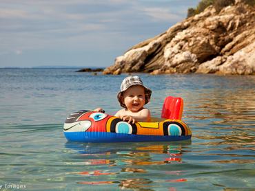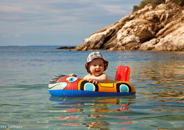 Ha már ülni tudó babával megyünk víz közelébe, a beülős úszógumi jó megoldás lehet, kicsivel nagyobbaknak pedig már karúszót adhatunk. Ennek az az előnye, hogy karúszóval a gyermek hátára is tud feküdni a vízben.