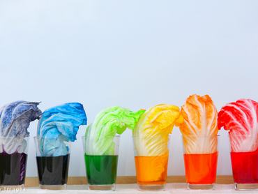 Az oly sokszor utált káposzta nagyon sok otthoni kísérletnél tehet jó szolgálatot (és akkor nem kell megenni sem). 4 bögre vízre, többféle ételfestékre és fehér káposztalevekre lesz szükségetek. Az ételszínezéket keverd a vízhez, majd mindegyik pohárba tegyél szárával lefelé egy-egy káposztalevelet. Várjatok egy-két órát, és a növény az erezetén át fel fogja szívni a vizet, és színessé válik. Ez az erezet az, ami egyébként szállítja a növényben keringő nedveket. A kísérletet fehér virággal is elvégezhetitek.