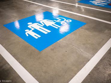 Nagyszerű találmány a családos parkolóhely: a szokottnál szélesebb, gyakran járda mellett kialakított placcokon a gyerekkel érkezők könnyebben tudják kivenni-betenni az autósülést, ha nagyon apró még a legkisebb családtag, ráadásul attól sem kell félni, hogy az óvodás-kisiskolás gyermek rácsapja az ajtót a mellettünk parkolóra. Ha pedig tényleg van mellette járda, biztonságosabban juthat el mindenki az üzletig.