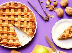 Az almától szaftos a töltelék, a narancs és a citromlé ellensúlyozza az édességét, a dió finoman megpirul a tésztarácsok között.