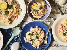 Néhány egyszerű hozzávalóból pillanatok alatt kitűnő sonkasalátát készíthet, jó vendégvárónak, de ünnepek után, maradékhasznosításra is.