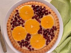 Gyerekkori emlékeket idéző hagyományos gyümölcstorta: puha piskótalapon vaníliapuding, bőven megpakolva friss idénygyümölcsökkel.
