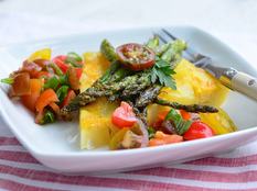 Végre van újkrumpli, spárga és jó pár friss gyümölcs és zöldség a piacon. Az első adag friss zöldségből kiadós tojáslepény készült vajas spárgával.