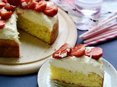 A kókuszos-mascarponés krém és a friss eper tökéletes párost alkotnak a kicsit sűrűbb piskótával. Gyors, szép, finom.