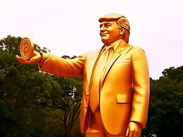 Különös látványra ébredt az amerikai főváros szeptember 18-án. A Capitolium épületével szemben ugyanis egy majd' 4 méteres arany színű szobrot emeltek Donald Trumpnak, amelyen az amerikai elnök egy hatalmas Bitcoin érmét tart ünnepélyesen a kezében.
