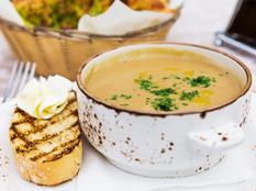Tökéletes mellé egy adag friss házi kenyér, életmódváltó verzióban pedig egy kis csilivel, ecetes lében savanyított zellerszárak.