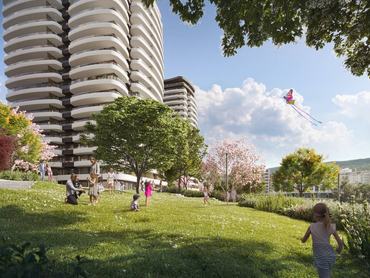 Hatalmas lakópark épül az Újpesti-öböl Duna Plaza felőli partjára. A Cordia Marina City területén áll majd Budapest legmagasabb háza.
