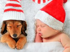 A csecsemő és kiskutya mindig jó páros, főleg ha még a karácsony is betársul. Zsebkendőket elő, és nézze meg a fotókat!