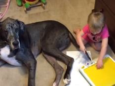 Mihez kezd egy kreatív kétéves, ha ecset nincs, viszont épp kéznél van egy béketűrő, borjúméretű háziállat?