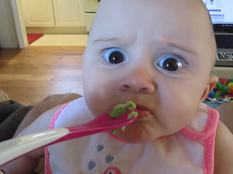 Így néz ki, amikor egy tálkányi pépesített avokádót próbálnak egy elég türelmes gyerekbe erőltetni. Nagyon vicces videó!