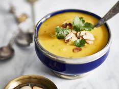 Ezt az édesburgonya-levest mézes-paprikás dióval érdemes tálalnod