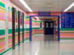 A gyógyítólag ható színes csíkokat az ismert Op Art művész, Bridget Riley festette fel a kórház falára.