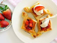 A tészta trükkösnek tűnő, de valójában egyszerű hajtogatása után 10 perc alatt leszünk kész a látványos, ropogós-gyümölcsös-tejszínes szépségekkel.