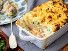 És ez tényleg krumplis hal, méghozzá az angolok halas pitéje füstölt hallal és jó sok vajas krumplipürével a tetején.