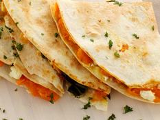 Ha maradt az ebédről egy kevés édesburgonya-püré, használd fel vacsorára, és készítsd el vele ezt a remek quesadillát. Rengeteg reszelt vörös cheddar kerül bele, és azért, hogy a friss, ropogós zöldségek se maradjanak ki belőle, paradicsomot és rukkolát is töltöttünk a tekercsekbe.