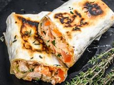 Spenótos-édesburgonyás wrap: egy nagy adag olvadt sajtot se hagyj ki belőle!