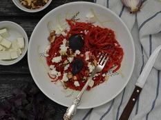 Szeretjük a céklát köretként, de ha már lassan itt a szezonja, miért ne tehetnénk süteményekbe vagy ilyen remek, tésztás fogásokba. Ha húsosan készítenéd, sült csirkemellcsíkokkal vagy baconkockákkal dobd fel.