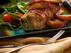 A sovány hús mellett remek a bacon, és ha salátával megunod, főtt gesztenye és fehérrépa keverékével érdemes tálalnod.