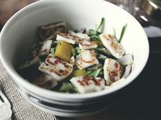 A kéksajt és a saláta mindig jól működik együtt, legyen szó jégsalátáról vagy fejes salátáról. Ennek a tetejére mi egy adag meleg, fokhagymás vajban megforgatott friss, tavaszi retket is készítettünk.
