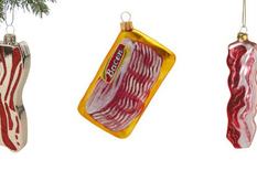 Menő a szaloncukrok és a színes gömbök közé üvegből készült szalonna díszt akasztani? Ráadásul nem is túl olcsó, két darab 6200 forintba kerül az Amazonon.
