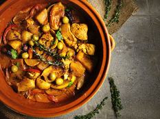Egyszerű csirketagine – barackkal és zöldfűszerekkel a legfinomabb