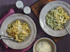 Nálunk szénhidrátcsökentett tésztával készült ez a klassz és könnyen összeállítható vacsora, amire egy nagy adag pecorino sajt és egy kevés friss snidling is került.