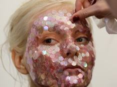 Flitterekkel, kristályokkal és műanyag virágokkal dekorálták a modellek arcát, de olyan bemutató is akad, ahol alig sminkeltek valamit.