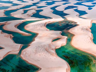 A Lençóis Maranhenses nem egy átlagos sivatag: az év egy részében rengeteg eső árasztja el a homokdűnék közötti medencéket, és kristálytiszta vízű lagúnákat hoz létre, ahol strandolni is lehet.