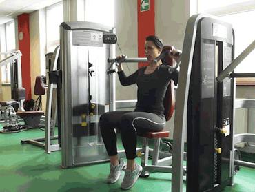 A vállból nyomás mozdulatát imitálja, a különböző fogásokat váltogathatjuk, így a vállizom többféleképp dolgozik. A könyök enyhén vízszint alá enged, majd a fej felé tol a súly, miközben kifújjuk a levegőt.