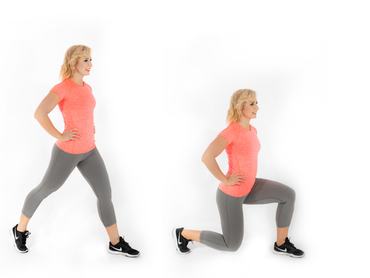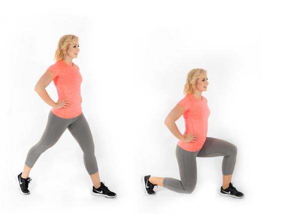 – Állj csípőszélességű távolságra, majd egy nagy lépéssel lépj hátra a bal lábaddal, engedd le a térded nagyon közel a talajhoz. Mindkét lábbal végre kell hajtani a gyakorlatot! Figyelj rá, hogy 90 fokos szöget zárjon be a feneked és a lábad, illetve folyamatosan tartsd egyenesen a hátad.