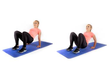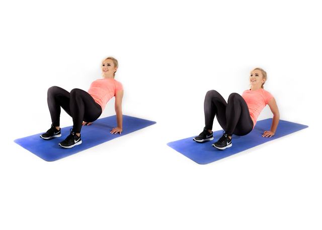 – Hajlítsd be a könyököd, addig, amíg a feneked pont nem érinti a talajt. A tricepszed közben megfeszül, majd újra a kiindulóhelyzetbe nyomod magad.