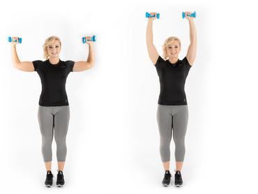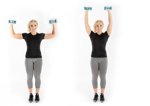 – Nyomd ki a súlyokat a válladdal egy vonalba, utána térj vissza a kiindulási helyzetbe.