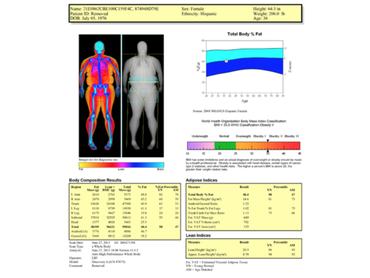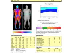 Emberkísérletbe fogtunk ugyanis, és elmentünk a Duna Medical Center obezitológiai kivizsgálására. Egy délelőtt alatt túlestünk egy laborvizsgálaton, egy cukorterhelésen, majd egy DEXA nevű gép segítségével körülbelül 8 perc alatt átpásztázták a testünket, hogy kiderüljön csontjaink ásványianyag-tartalma, zsírszöveteink mennyisége és eloszlása, a hasi zsír aránya, és megkapjuk a tápláltsági, edzettségi mutatóinkat. Hogy is néz ki ez pontosan, hát egy random leleten így: