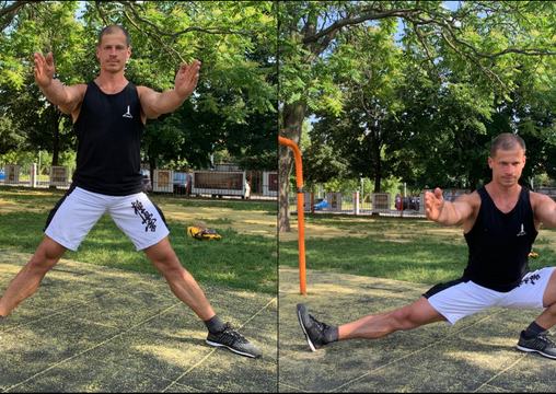 Egy oldalra csinálj meg egy adott ismétlésszámot, majd válts oldalt, de a felsőtested tartsd végig függőleges helyzetben, ne dülöngélj előre-hátra. Ahogy fejlődsz, növelheted a harántterpeszt, így ha helyesen hajtod végre a gyakorlatot, akkor a hátul lévő láb oldalán aktívan nyújthatod a csípőhajlító izmokat – ezek a legtöbb embernél megrövidültek és gyengék.