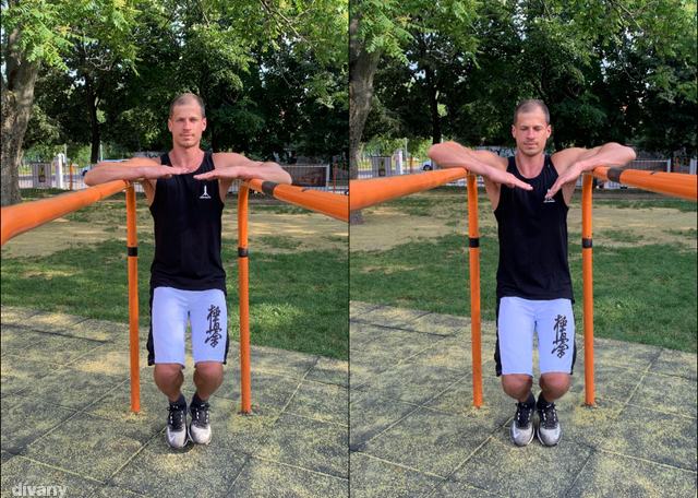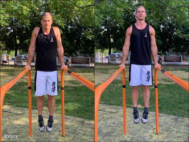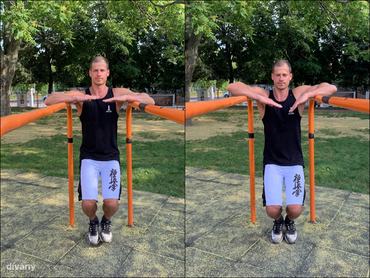 Az eszköz nélküli alapgyakorlatok után mutatjuk, mi mindent kezdhetsz a párhuzamos korláttal. Elsőként jöjjön három olyan technika, mely amellett, hogy rávezet a tolómozgásokra, erősíti a kar és a hát izmait.