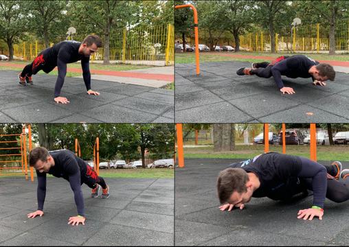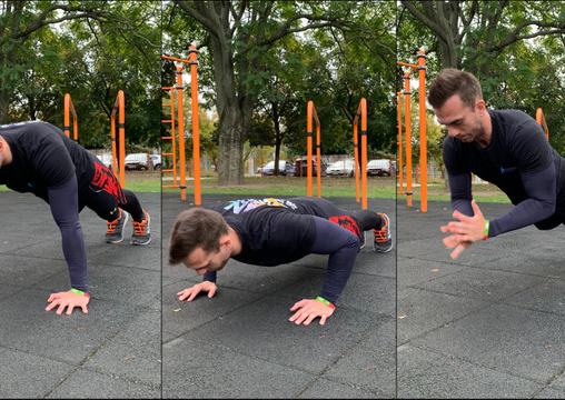 Ha ez már magabiztosan megy, próbálj meg egy-egy tapsot is belevinni: Amint a kezed elhagyja a talajt, húzd a mellkasod elé és gyorsan tapsolj egyet, mielőtt visszaengeded magad a kiindulóhelyzetbe. Próbáld „elkapni” a talajt, vagyis amint leér a kezed, azonnal hajlítsd a könyöködet, és kezdd a következő ismétlést. Mivel a tapsolós fekvőtámasz robbanékony gyakorlat, nem igazán lehetséges annyi ismétlést végezni belőle, mint más variációkból. Célozd meg a 3x5 – 3x8 ismétlést, és próbáld olyan magasra lökni magad, amennyire csak tudod.
