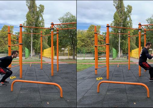 Megjegyzés: nem mindenkinek érdemes teljesen leguggolni, a térdízület esetleges túlterhelése miatt indíthatod a gyakorlatot fél guggolásból is, amikor a comb vízszintes.
