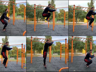 A guggolásból felugrás hamar felkerült a „legfárasztóbb saját testsúlyos gyakorlatok” című listámra – nem véletlenül: egyszerre stimulálja a far-, a comb- és a törzsizomzatot, plusz a has-derék rész is bekapcsolódik a mozgásba, emellett jó egyensúlyérzéket igényel és irtó dinamikus is. Merthogy nem csak egy-egy felugrásról van szó, úgy a leghatékonyabb, ha sorozatokat csinálunk belőle, kipurcanásig.